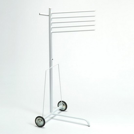 Изготовлена из стали, окраска порошковым методом, с 5 крючков вынос 45 см , которые могут вместить 100 обручей разного диаметра.