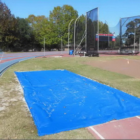 Чехлы для ямы приземления изготовлены из синтетических материалов. Чехол поставляется с утяжелителем по периметру, карабины в углах позволяют с легкостью прикрепить к закладным стаканам.