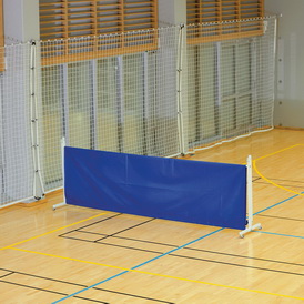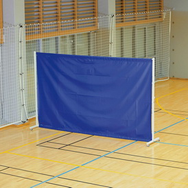 Перегородка предназначена для разделения зала на игровые зоны, так же возможно использовать как защита стен спортзала, улавливатель мячей, теннисные перегородки. Каркас изготовлен из стальной трубы окрашен полимерным покрытием, защита ПВХ класс М2, конструкция имеет 4 поворотных колеса для легкой транспортировки. Перегородка легко складывается и имеет 2 уровня высоты для удобной эксплуатации.