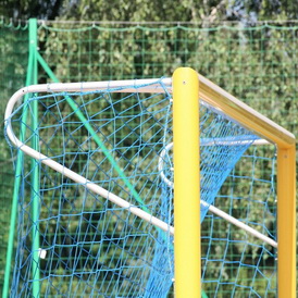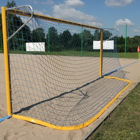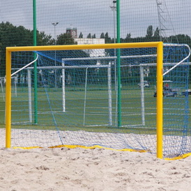 Изготовлены из алюминиевых профилей с овальным сечением 100x120 мм, с усиленными изнутри стенками. В комплекте со стаканами для монтажа на песке. Глубина ворот в верхней части 80 см.