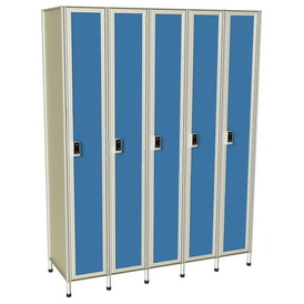 Шкаф из АКП 5-1 Slim — пятисекционный шкаф для раздевалок на пять кабинок в полный рост.
