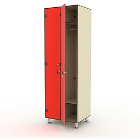 Наполнение каждой секции: верхняя и нижняя полка, 1 крючок двухрожковый, 1 штанга, на весь шкаф 4 ножки h=100 мм, замок механический