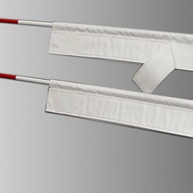 Карманы для волейбольных антенн прикрепляются с внешнего края каждой ограничительной ленты при помощи липучек, прикрепленной вертикально по краям сетки, и расположены на противоположных сторонах сетки.