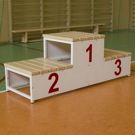 Каркас пьедестала изготовлен из стальной профильной трубы, площадка из дерева, защитная панель пластик, обозначение цифрами от 1 до 3.