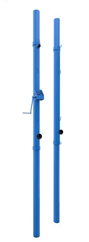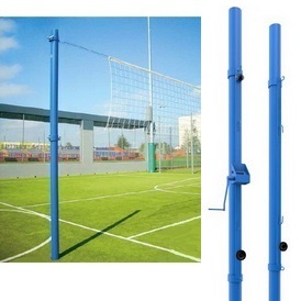 Стойки изготовлены из стальной трубы, диаметром 76 мм. Стойки оборудованы механизмом натяжения и регулировкой по высоте с помощью барашков. Возможность свободной регулировки высоты сетки в интервале 1,07-2,43 м позволяет использовать стойки для игры в волейбол а также бадминтон.