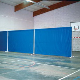 Перегородка предназначена для разделения зала на игровые зоны, так же возможно использовать как защита стен спортзала, улавливатель мячей, теннисные перегородки. Каркас изготовлен из стальной трубы окрашен полимерным покрытием, защита ПВХ класс М2, конструкция имеет 4 поворотных колеса для легкой транспортировки. Перегородка легко складывается и имеет 2 уровня высоты для удобной эксплуатации.