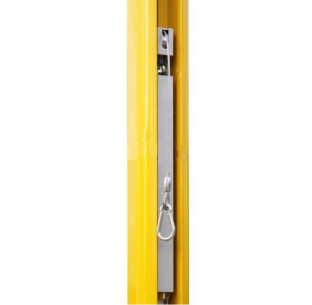 Стойки изготовлены из специального армировонного алюминиевого плоского профиля 117х71 мм, Механизм натяжки полностью находится внутри алюминиевого профиля. Стойки оснащены новаторскими решениями механизма натяжения. Регулировка высоты сетки очень удобная, передвижение механизма натяжки и блокировки положения осуществляется при помощи совместной удобной хватки. Блокировка высоты механизма (сетки) осуществляется при помощи эксцентрического зажима с вкладом из тефлона. Складная рукоятка натяжения после напряжения сетки выпрямляется и прячется внутри главного профиля.