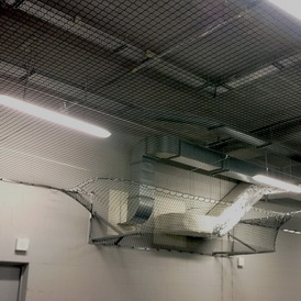Cетка защитная предназначена для защиты фонарей освещения, труб вентиляции и отопления а также оборудования смонтированного под потолком в спортивных зданиях и сооружениях.