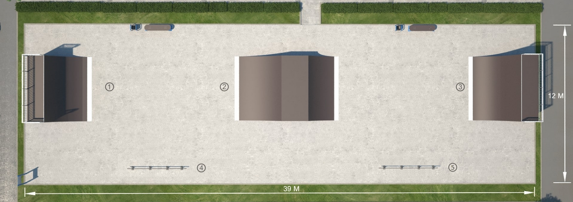 Минимальный размер площадки: 39x12 (468 м²)