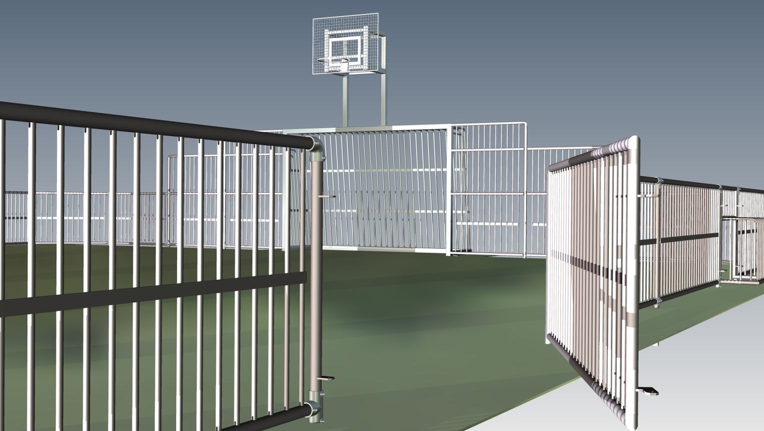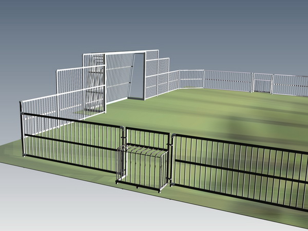 - ворота из стали оцинкованной 3 x 2 м или 2,4 x 1,6 м с открытой стенкой, служащей входом на поле,