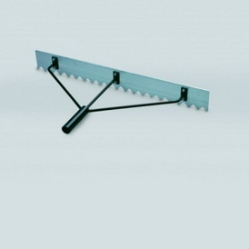 Двусторонний инструмент: одна сторона служит для рыхления поверхности, другая - для равномерного распределения грунта.